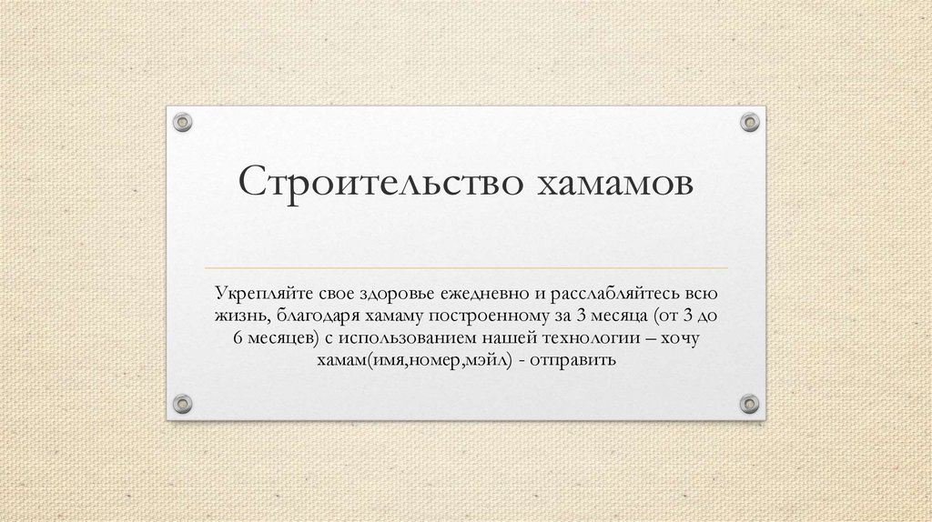 • Строительство хамамов от 3 до 6 месяцев, здоровье начинает