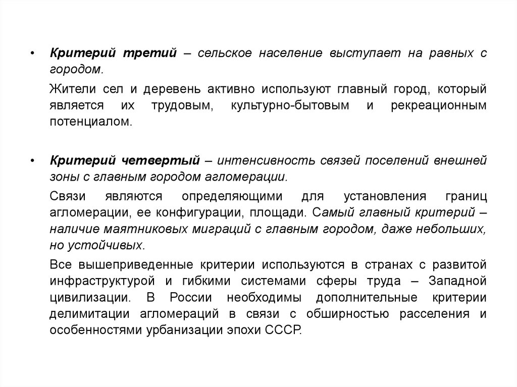 агломерации, ее конфигурации, площади. Самый главный критерий –