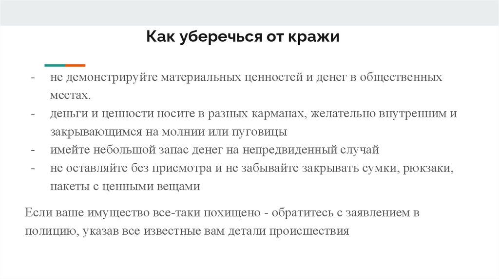 деньги и ценности носите в разных карманах, желательно внутренним и