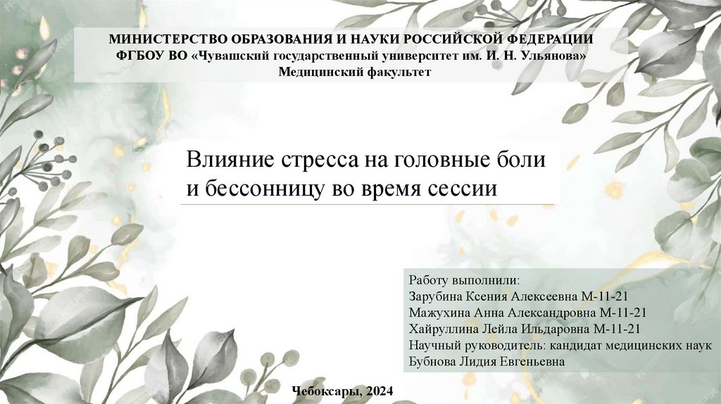 МИНИСТЕРСТВО ОБРАЗОВАНИЯ И НАУКИ РОССИЙСКОЙ ФЕДЕРАЦИИФГБОУ ВО «Чувашский государственный университет им. И. Н. Ульянова»