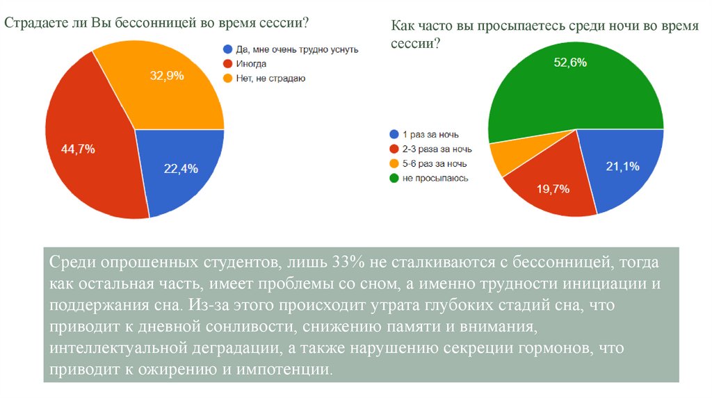 Среди опрошенных студентов, лишь 33% не сталкиваются с бессонницей, тогда