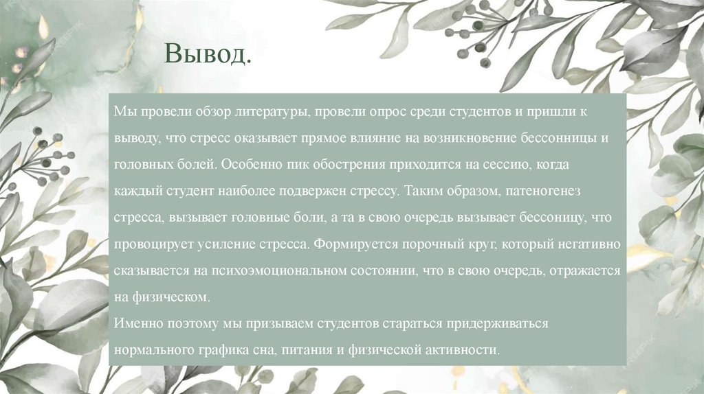 Вывод.Мы провели обзор литературы, провели опрос среди студентов и пришли к