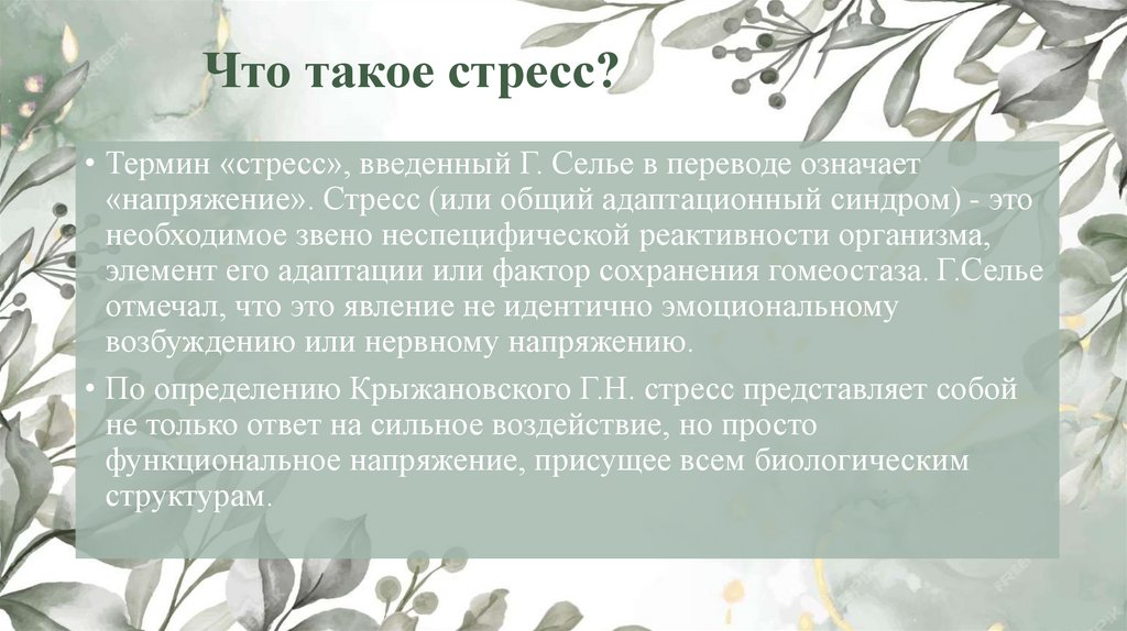 • По определению Крыжановского Г.Н. стресс представляет собой