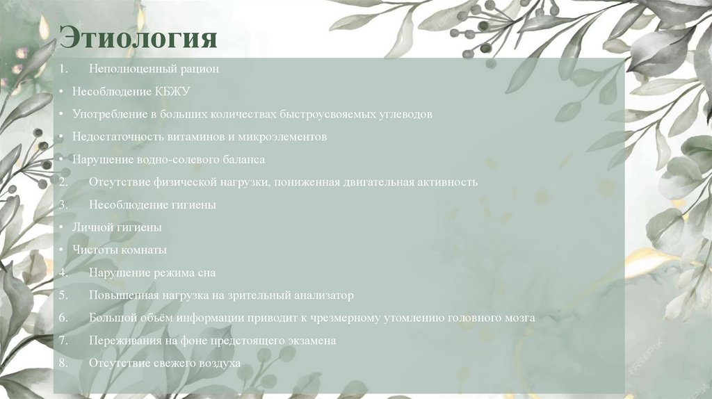 каждый студент наиболее подвержен стрессу. Таким образом, патеногенез