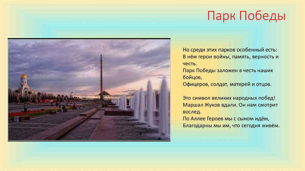 Парк ПобедыНо среди этих парков особенный есть: