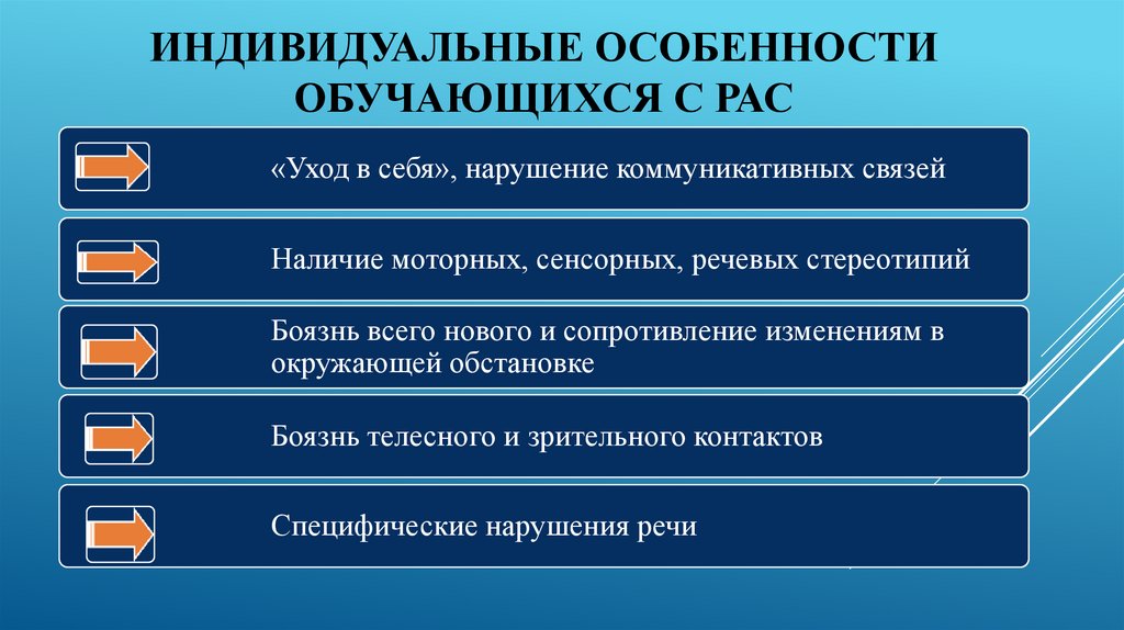 ИНДИВИДУАЛЬНЫЕ ОСОБЕННОСТИОБУЧАЮЩИХСЯ С РАС