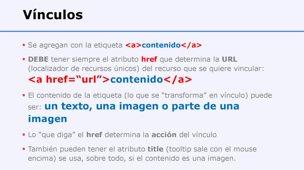 VínculosSe agregan con la etiqueta <a>contenido</a>
