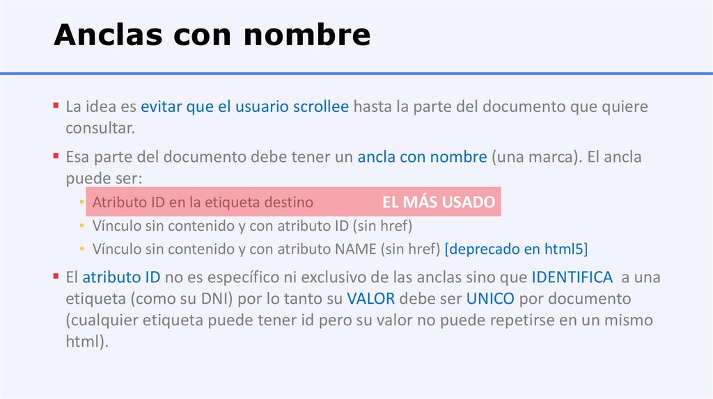 Anclas con nombreLa idea es evitar que el usuario scrollee hasta la parte del documento que quiere
