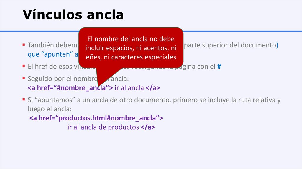 <a href=“#nombre_ancla”> ir al ancla </a>
