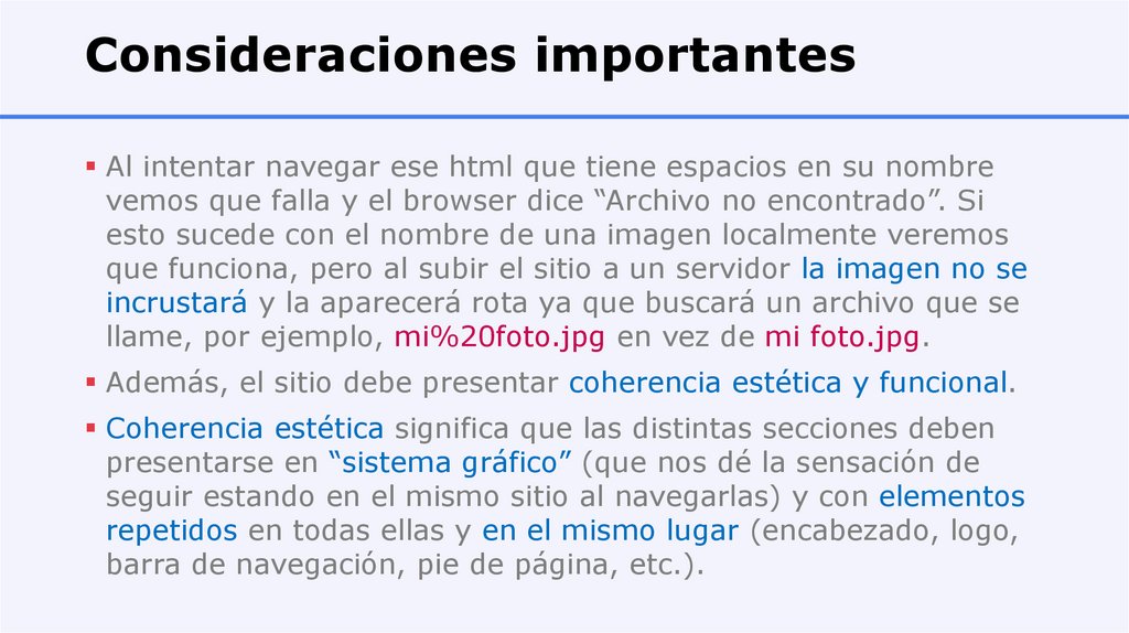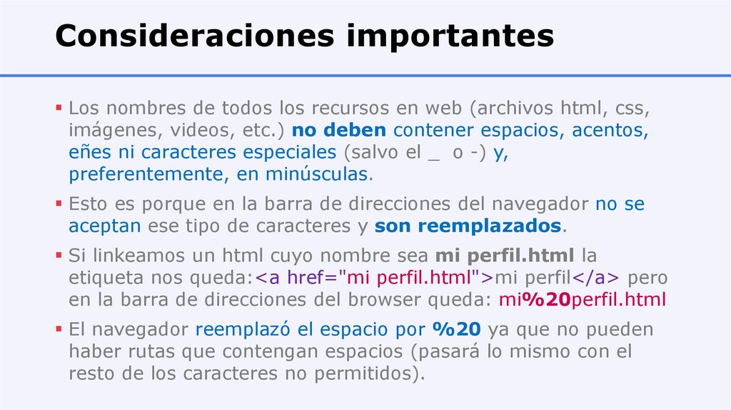 Consideraciones importantesLos nombres de todos los recursos en web (archivos html, css,