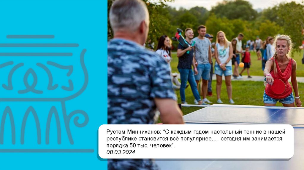 Рустам Минниханов: “С каждым годом настольный теннис в нашейреспублике становится всё популярнее…. сегодня им занимается