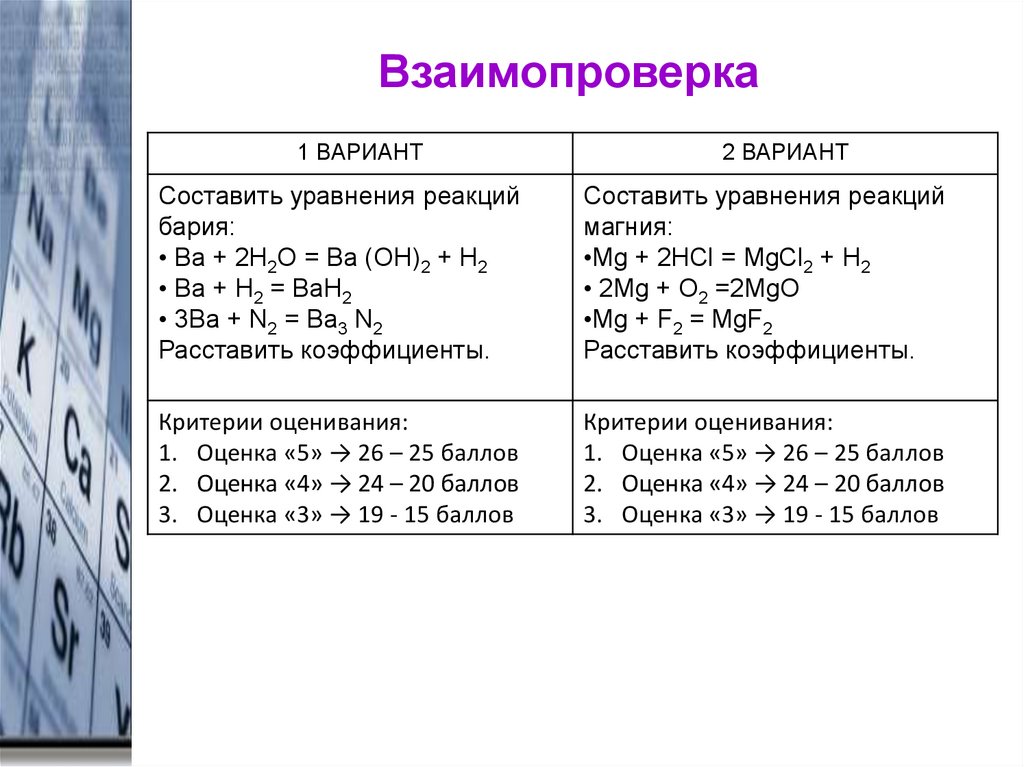 г) радиус атома: Be * Ba; Мg * Al; Ca * K; Na *Mg