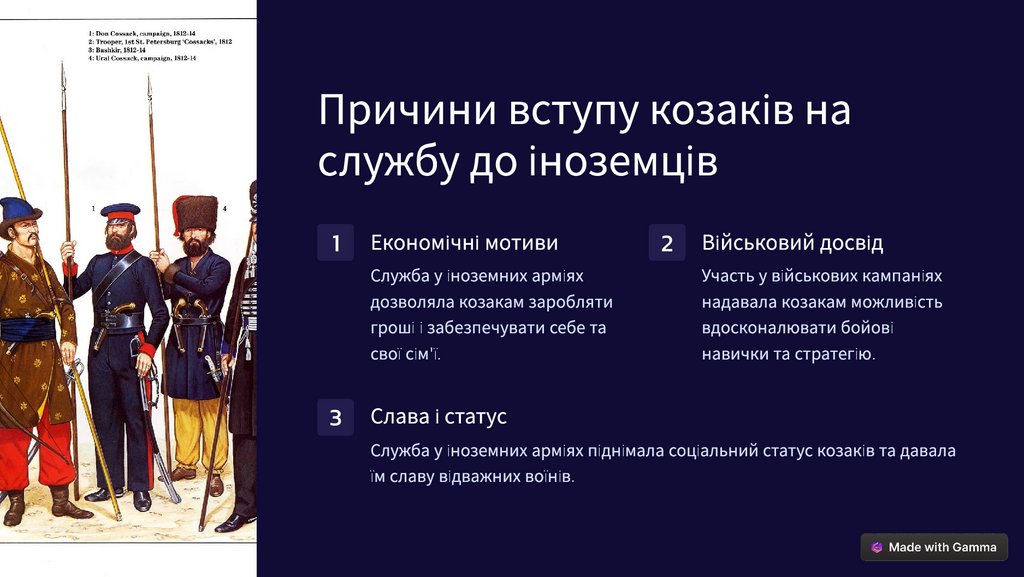 Причини вступу козаків наслужбу до іноземців