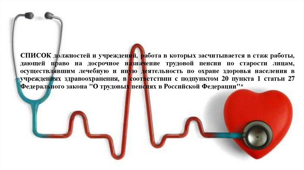 СПИСОК должностей и учреждений, работа в которых засчитывается в стаж работы,дающей право на досрочное назначение трудовой пенсии по старости лицам,