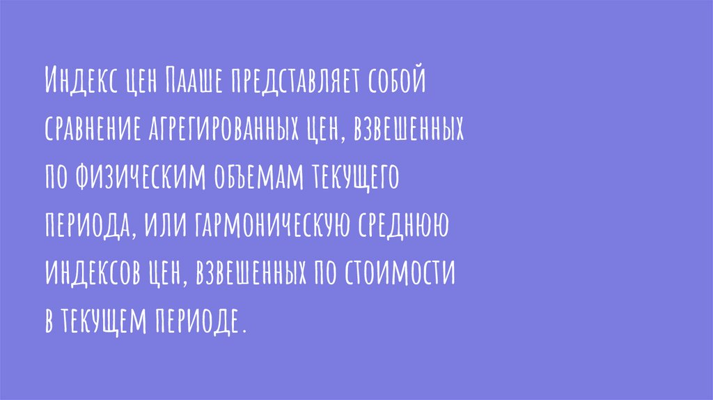 Индекс цен Пааше представляет собойсравнение агрегированных цен, взвешенных