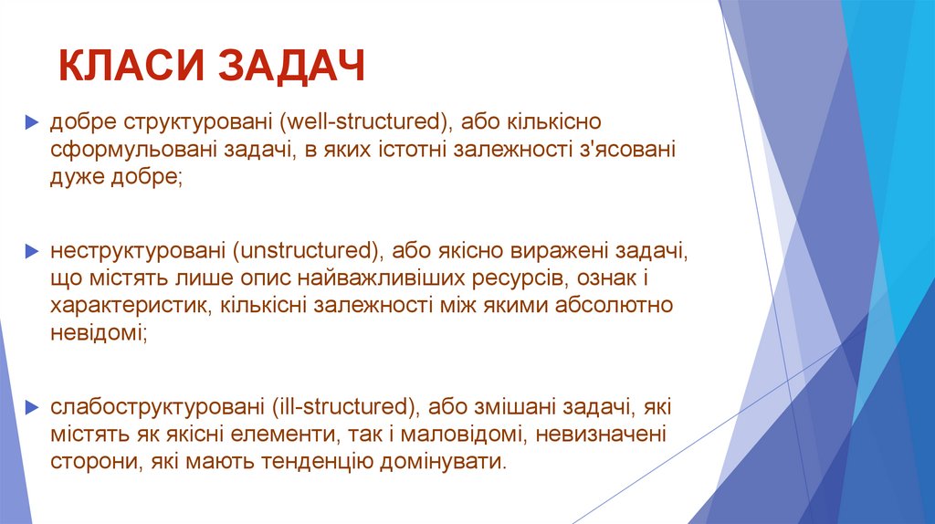 КЛАСИ ЗАДАЧдобре структуровані (well-structured), або кількісно