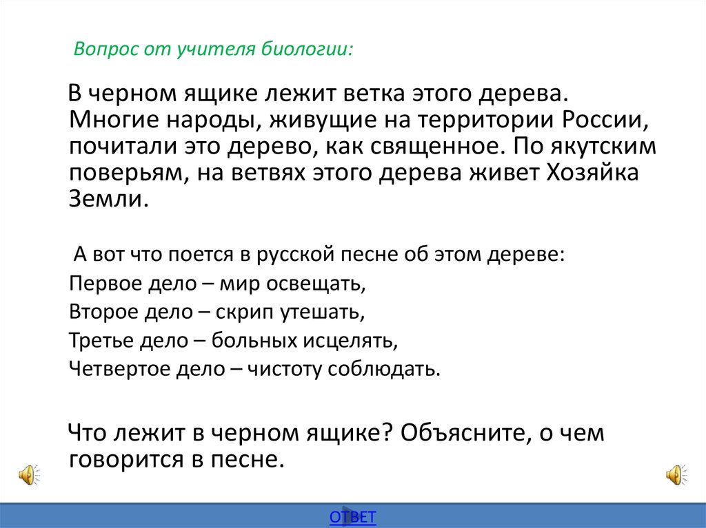 Вопрос от учителя биологии:В черном ящике лежит ветка этого дерева.
