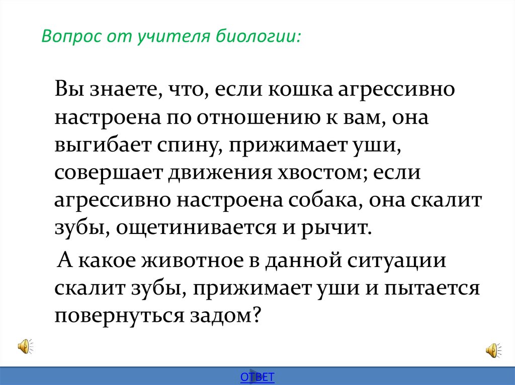 Вопрос от учителя биологии:Вы знаете, что, если кошка агрессивно
