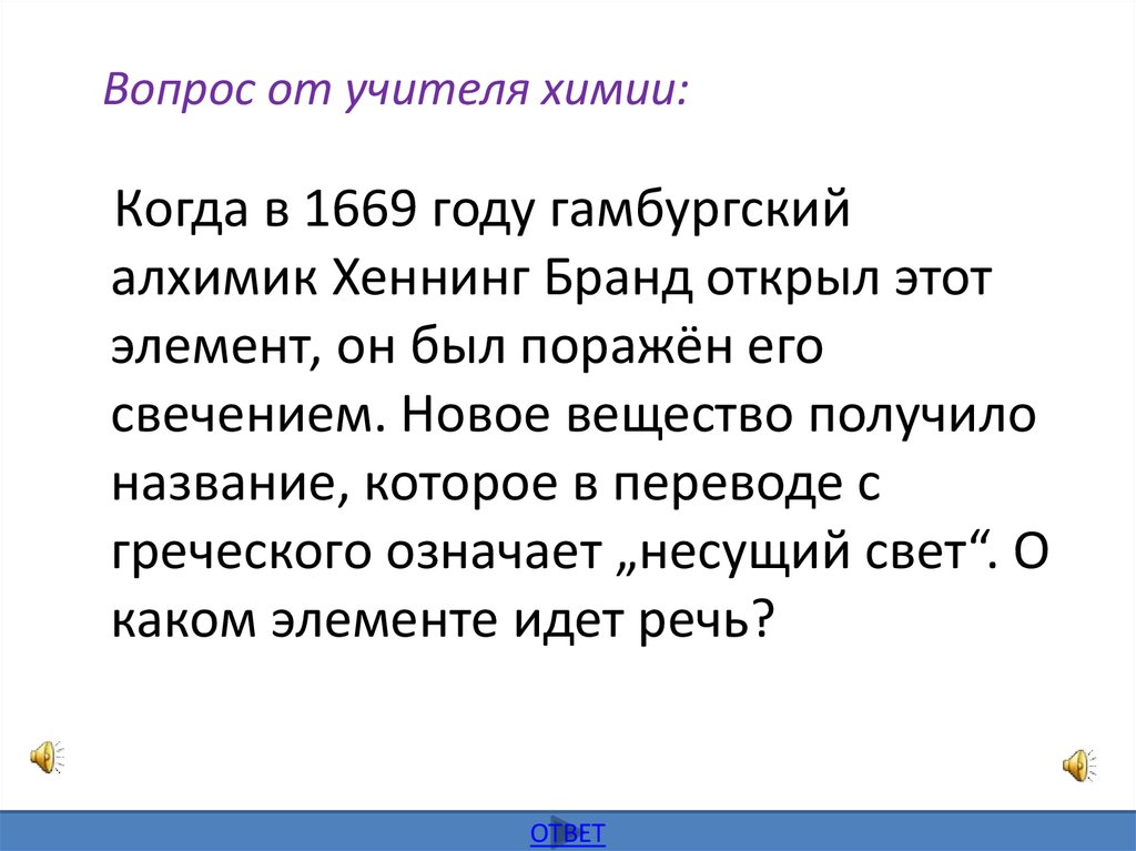 Вопрос от учителя химии:Когда в 1669 году гамбургский