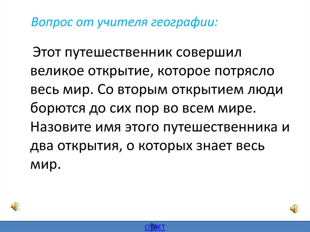 Вопрос от учителя географии:Этот путешественник совершил