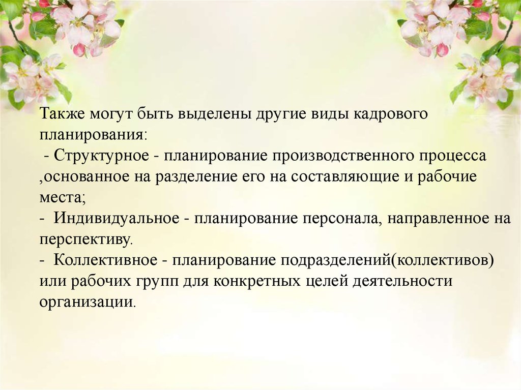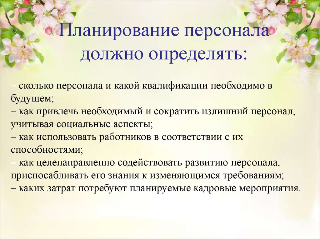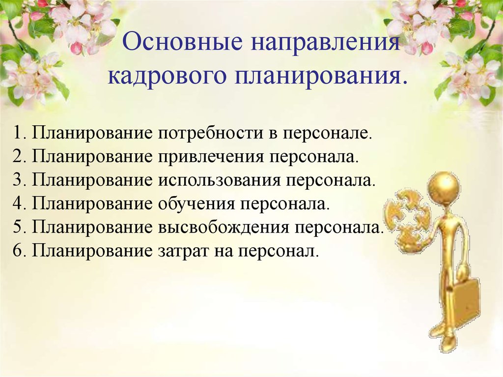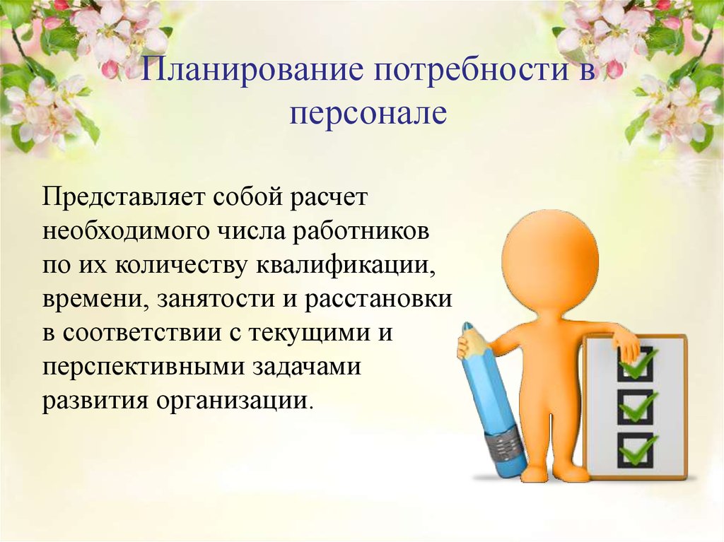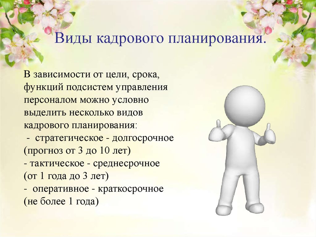 Сущность кадрового планированиязаключается в кратко-, средне- или долгосрочном определении его количественного и
