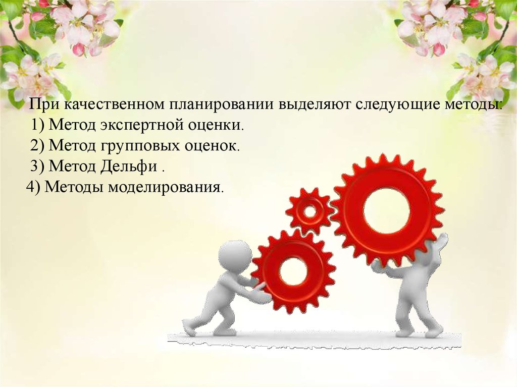 При качественном планировании выделяют следующие методы:1) Метод экспертной оценки.