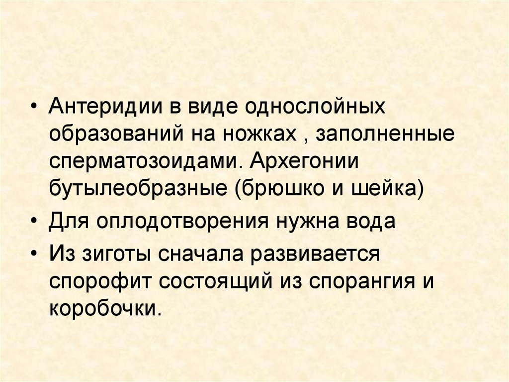 сперматозоидами. Архегонии