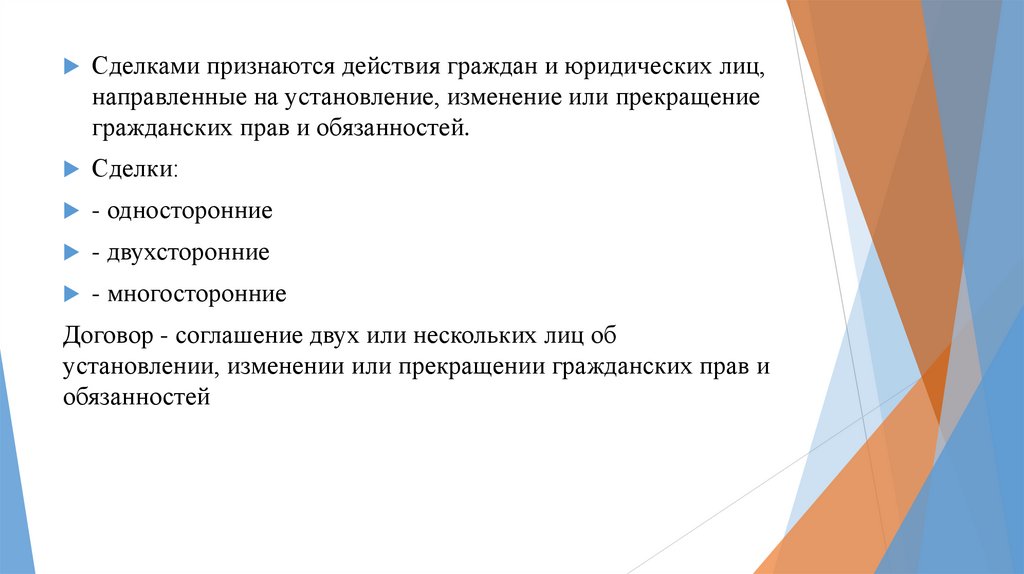 Сделками признаются действия граждан и юридических лиц,направленные на установление, изменение или прекращение
