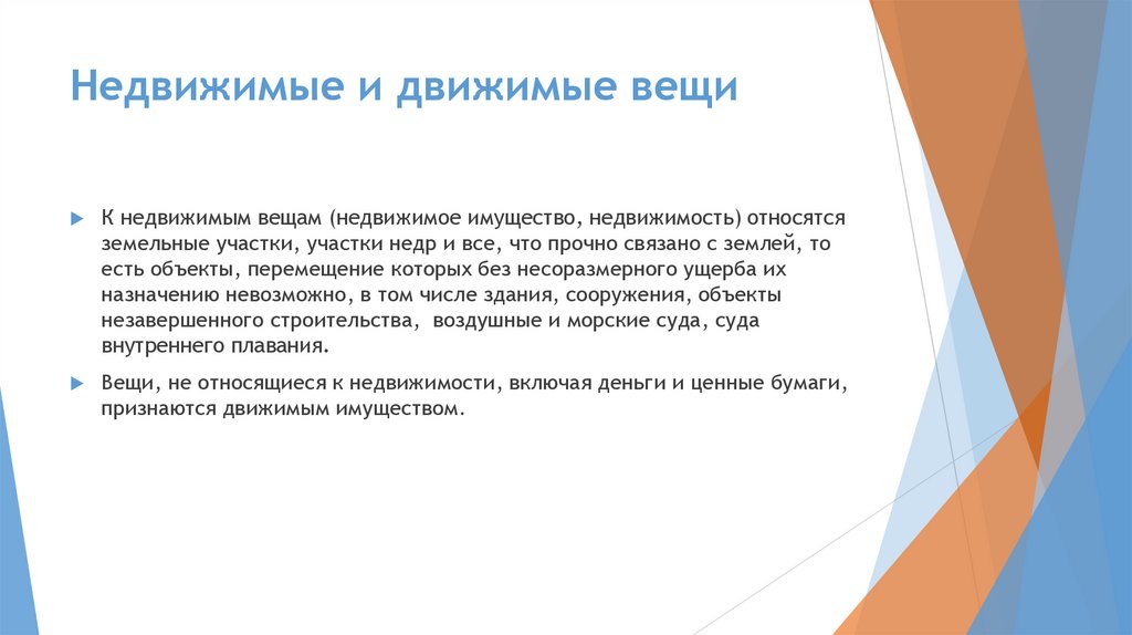 Недвижимые и движимые вещиК недвижимым вещам (недвижимое имущество, недвижимость) относятся