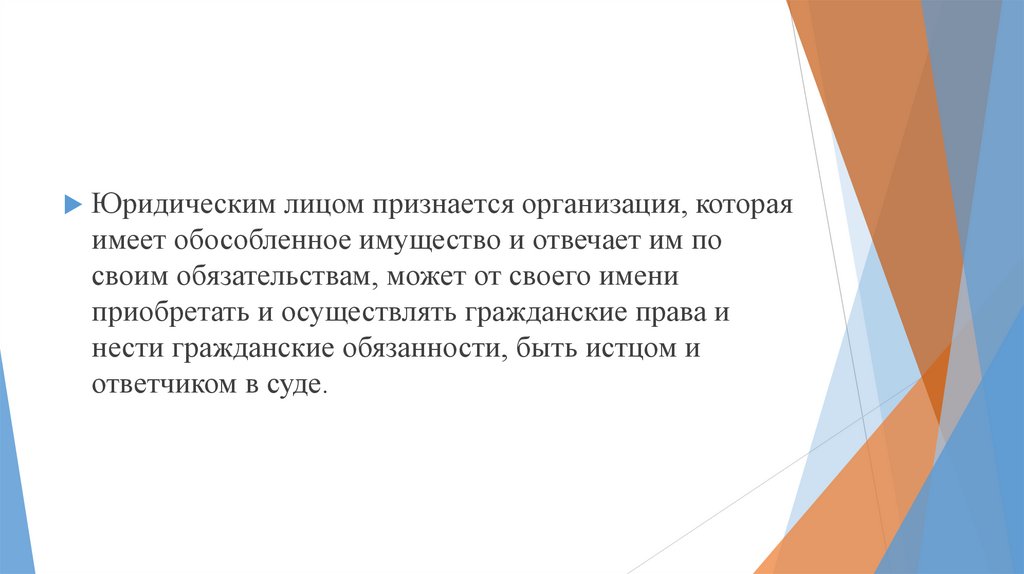 Юридическим лицом признается организация, котораяимеет обособленное имущество и отвечает им по