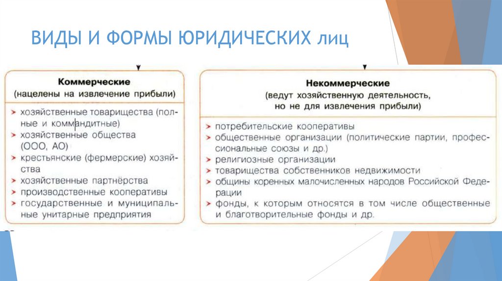 ВИДЫ И ФОРМЫ ЮРИДИЧЕСКИХ лиц5.