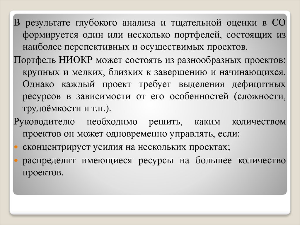 Количество проектов, находящихся в портфеле вконкретный период времени, зависит от размеров