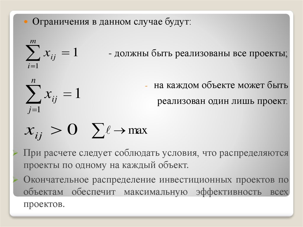 проектов), которые можно реализовать на n (j=1, n) объектах.