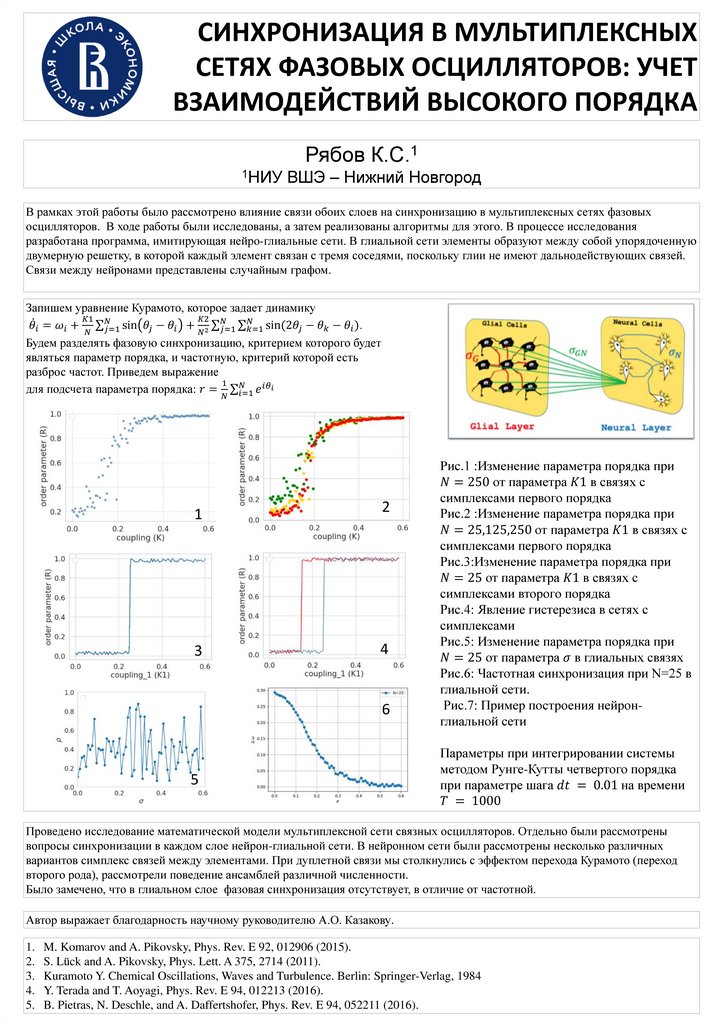 В рамках этой работы было рассмотрено влияние связи обоих слоев на синхронизацию в мультиплексных сетях фазовых