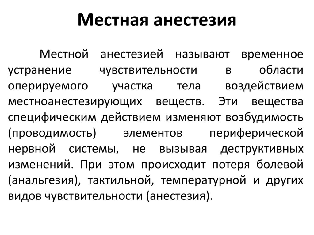 местноанестезирующих веществ. Эти вещества