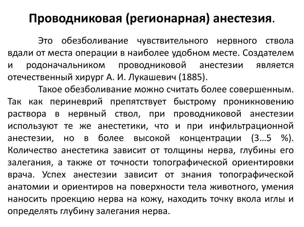 анестезии. Техника регионарной анестезии отличается высокой надежностью,