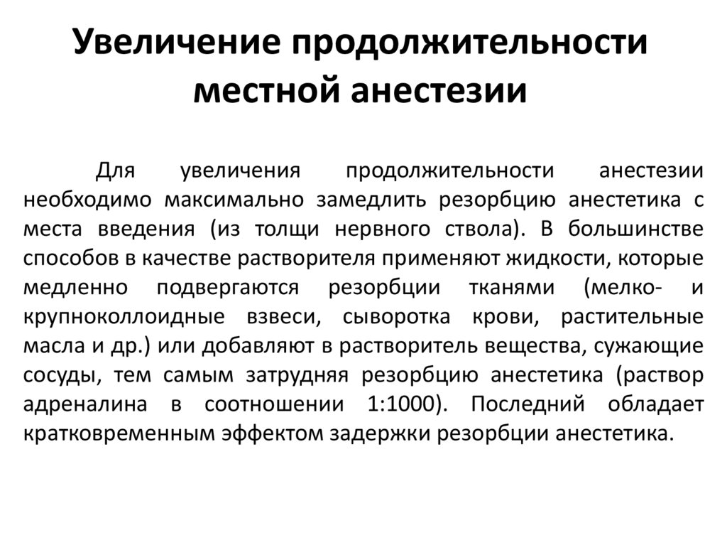 Увеличение продолжительностиместной анестезии