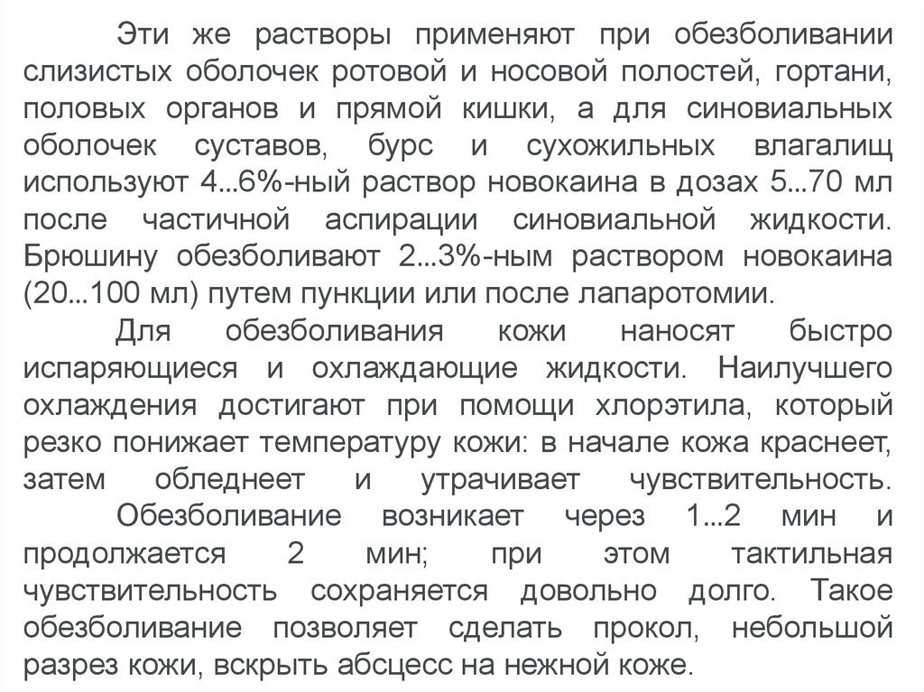 слизистых, серозных и синовиальных оболочек. Анестезия этого