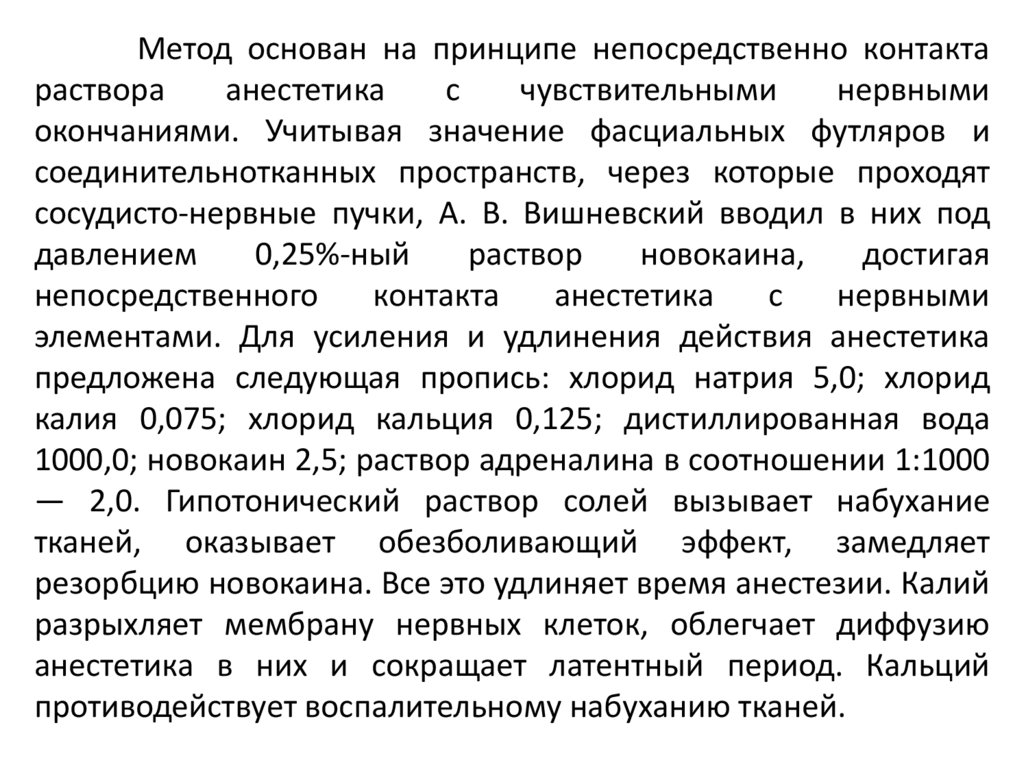 сосуды, тем самым затрудняя резорбцию анестетика (раствор