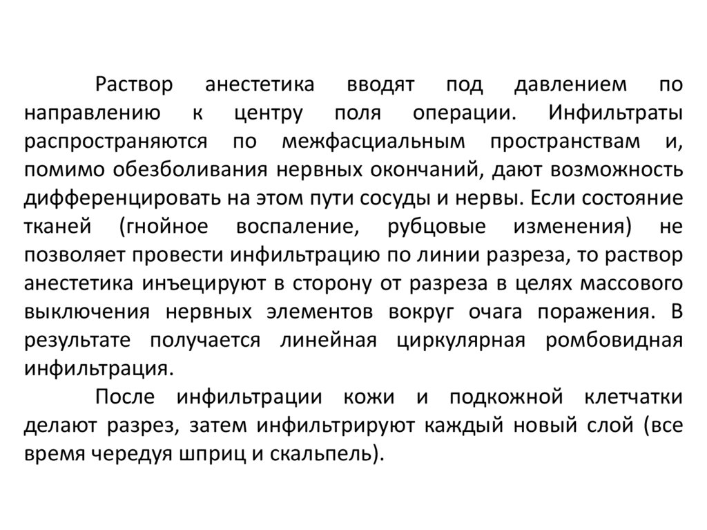 дополнительно приходится пользоваться и инфильтрационной,