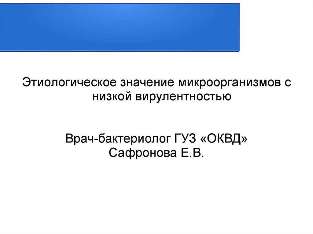Этиологическое значение микроорганизмов снизкой вирулентностью