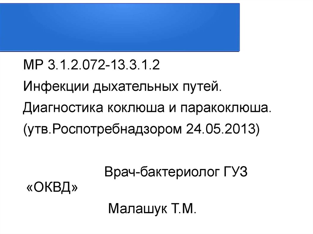 МР 3.1.2.072-13.3.1.2Инфекции дыхательных путей.