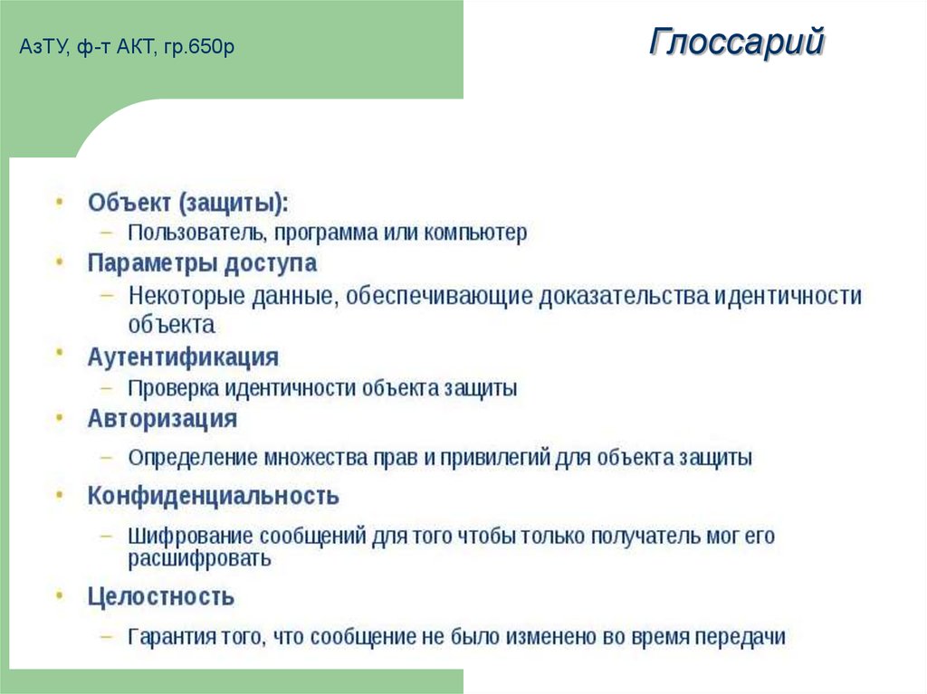 1. АзТУ, ф-т АКТ, гр.650р Глоссарий