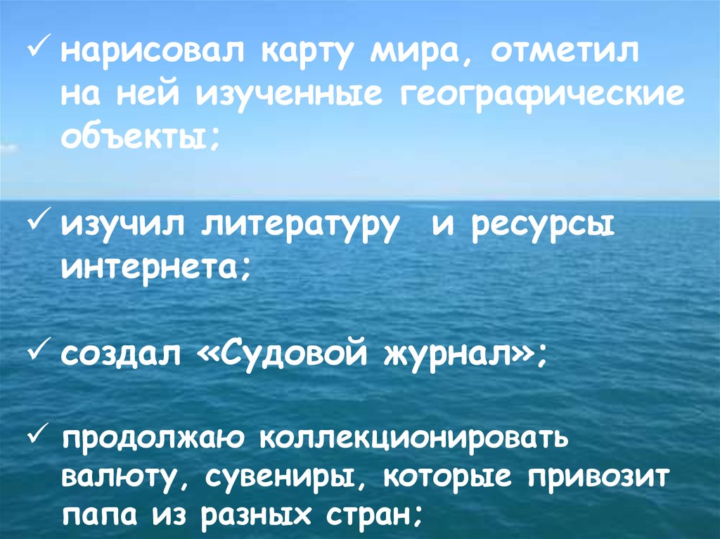 нарисовал карту мира, отметилна ней изученные географические