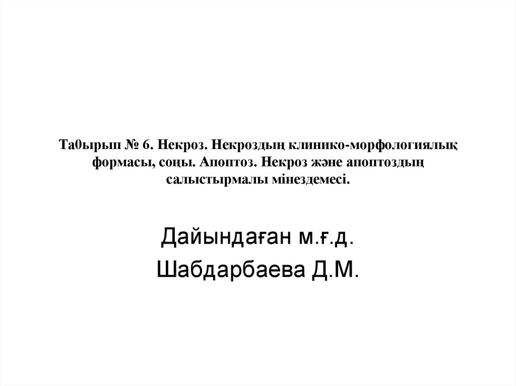 1. Та0ырып № 6. Некроз. Некроздың клинико-морфологиялық формасы, соңы. Апоптоз. Некроз және апоптоздың салыстырмалы мінездемесі.