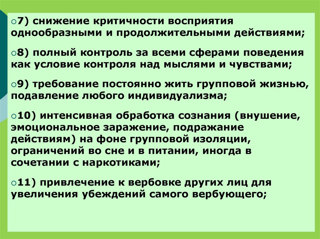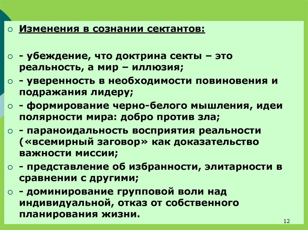 Изменения в сознании сектантов:- убеждение, что доктрина секты – это