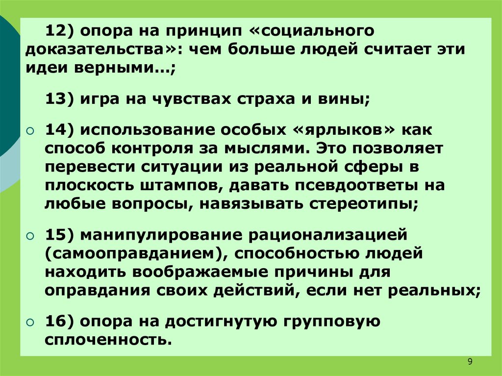 12) опора на принцип «социальногодоказательства»: чем больше людей считает эти