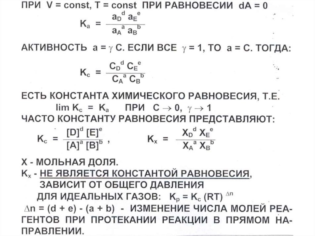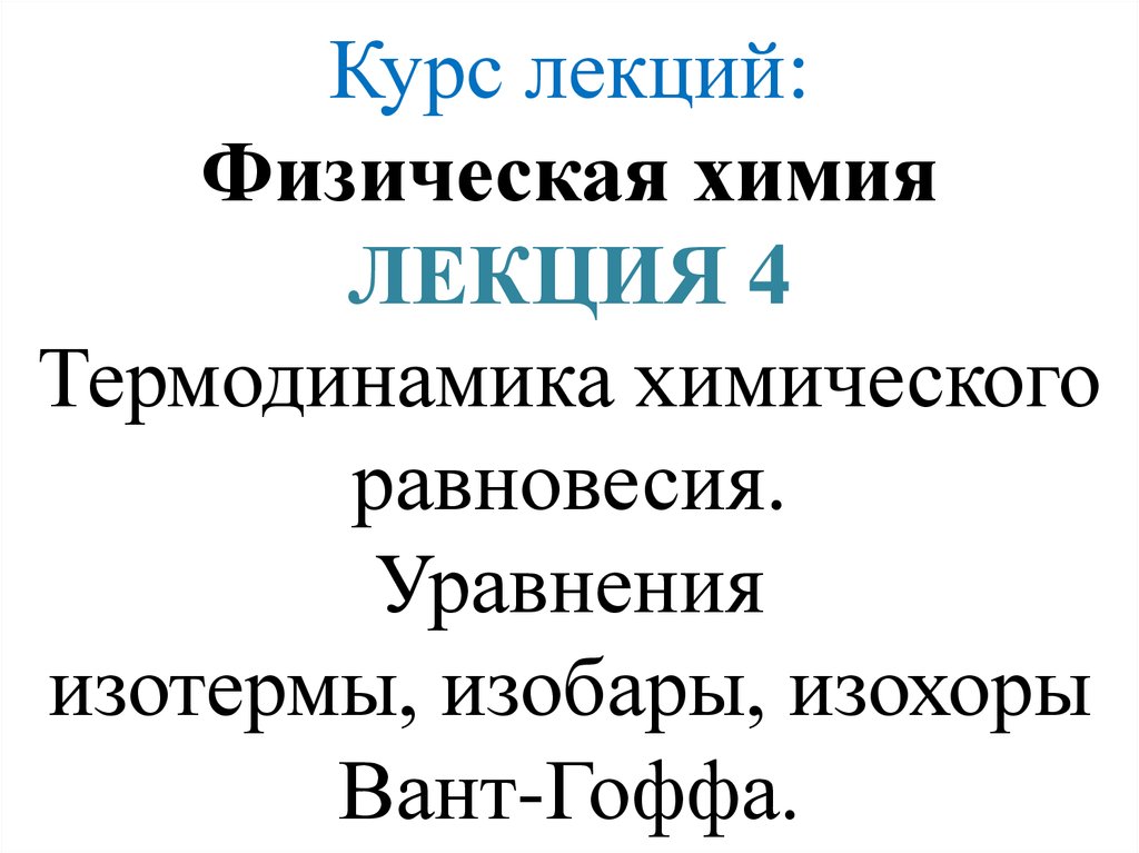 Курс лекций: Физическая химия ЛЕКЦИЯ 4 Термодинамика химического равновесия. Уравнения изотермы, изобары, изохоры Вант-Гоффа.