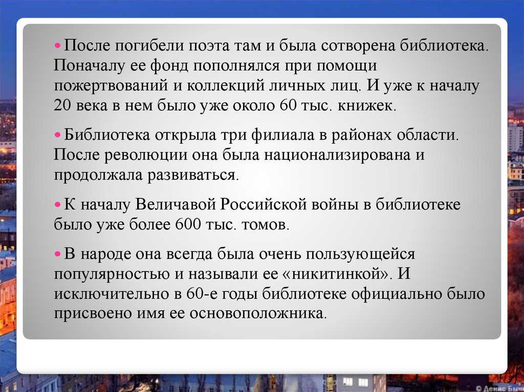 Послепогибели поэта там и была сотворена библиотека.