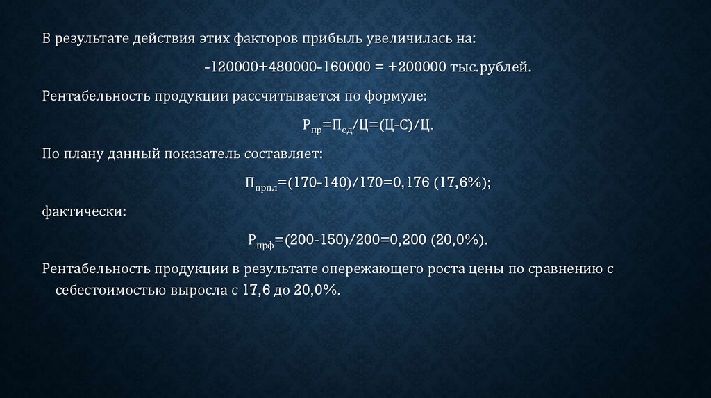 Рентабельность продукции в результате опережающего роста цены по сравнению с